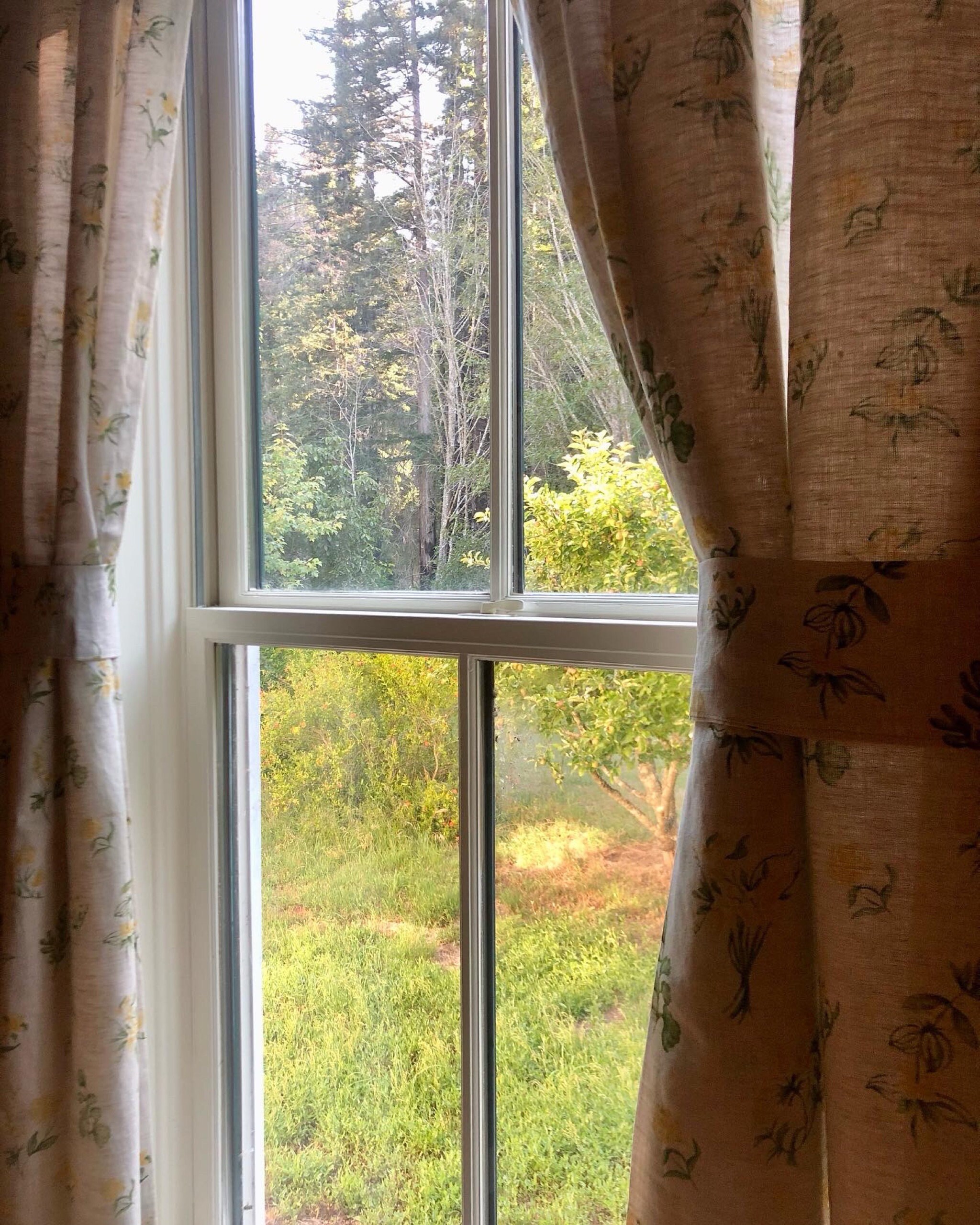 The picture taken in front of the window is curtains with blackout linings. Curtain color is darker shade beige than photo.