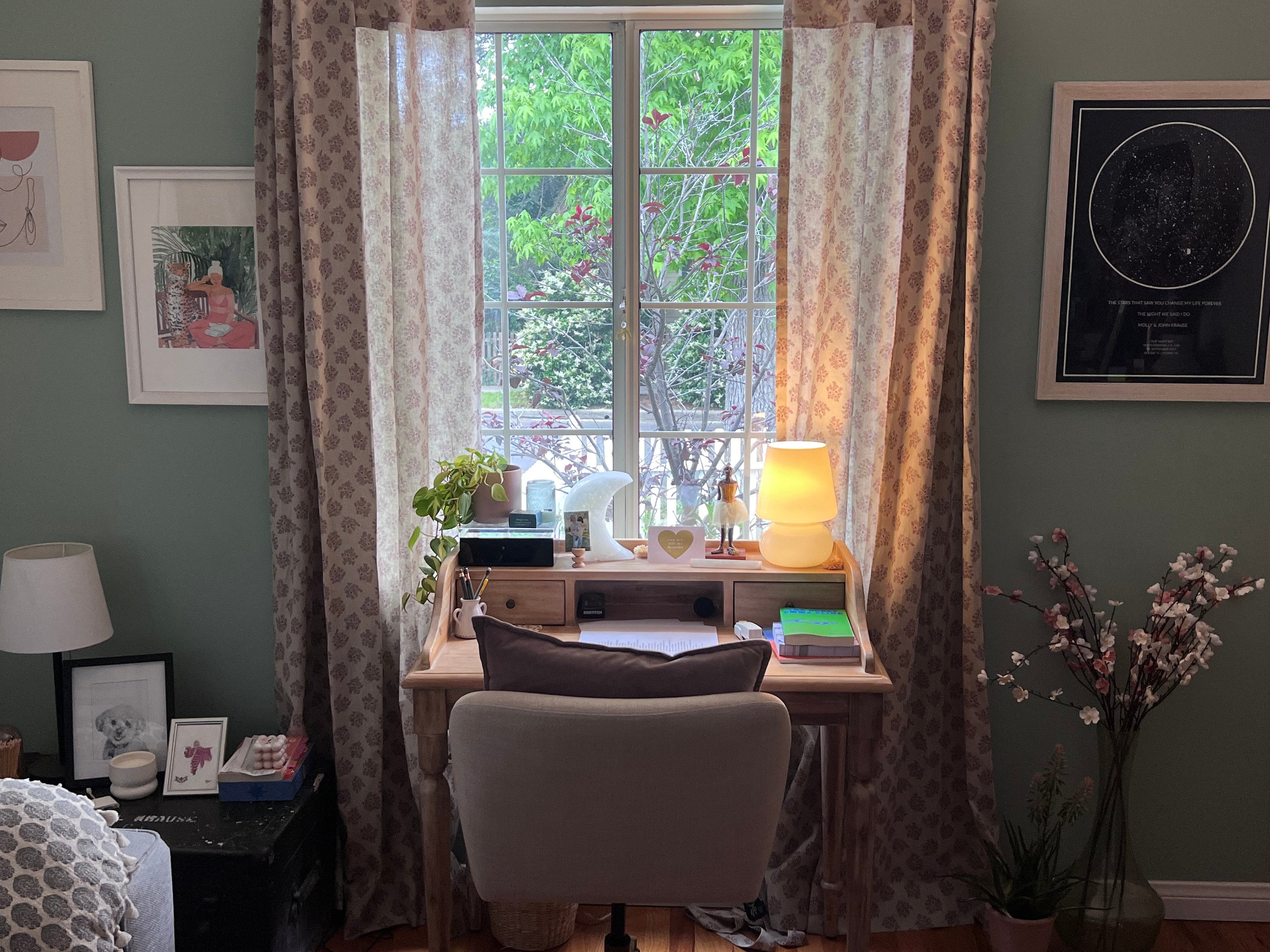 I'm SO happy with my new curtains. They're so beautiful and exactly what I wanted. And felt so sweet and handmade. They also threw in matching pillowcases that I immediately put on the pillows I have on my couch. And now the room feels completely designed