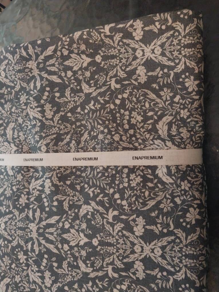 Make Your Place Preciously With Modern Vintage Beige Floral Pattern Print Washed Linen Cotton Curtain Faded Indigo Blue Background Drapery Panel for Living Room and Bedroom.