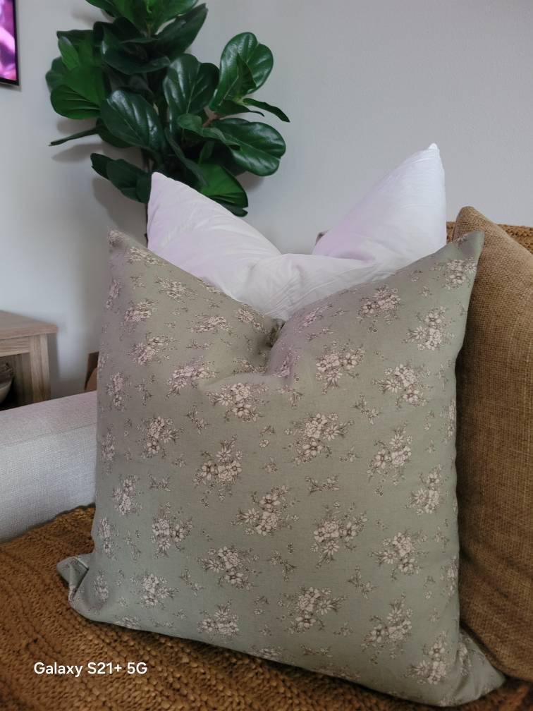 Make Your Place Preciously With Modern Vintage Natural Beige Floral Pattern Print Cushion Cover with Sage Green Background Decorative Square Pillow Case 18 20 26 inches for Bedroom.