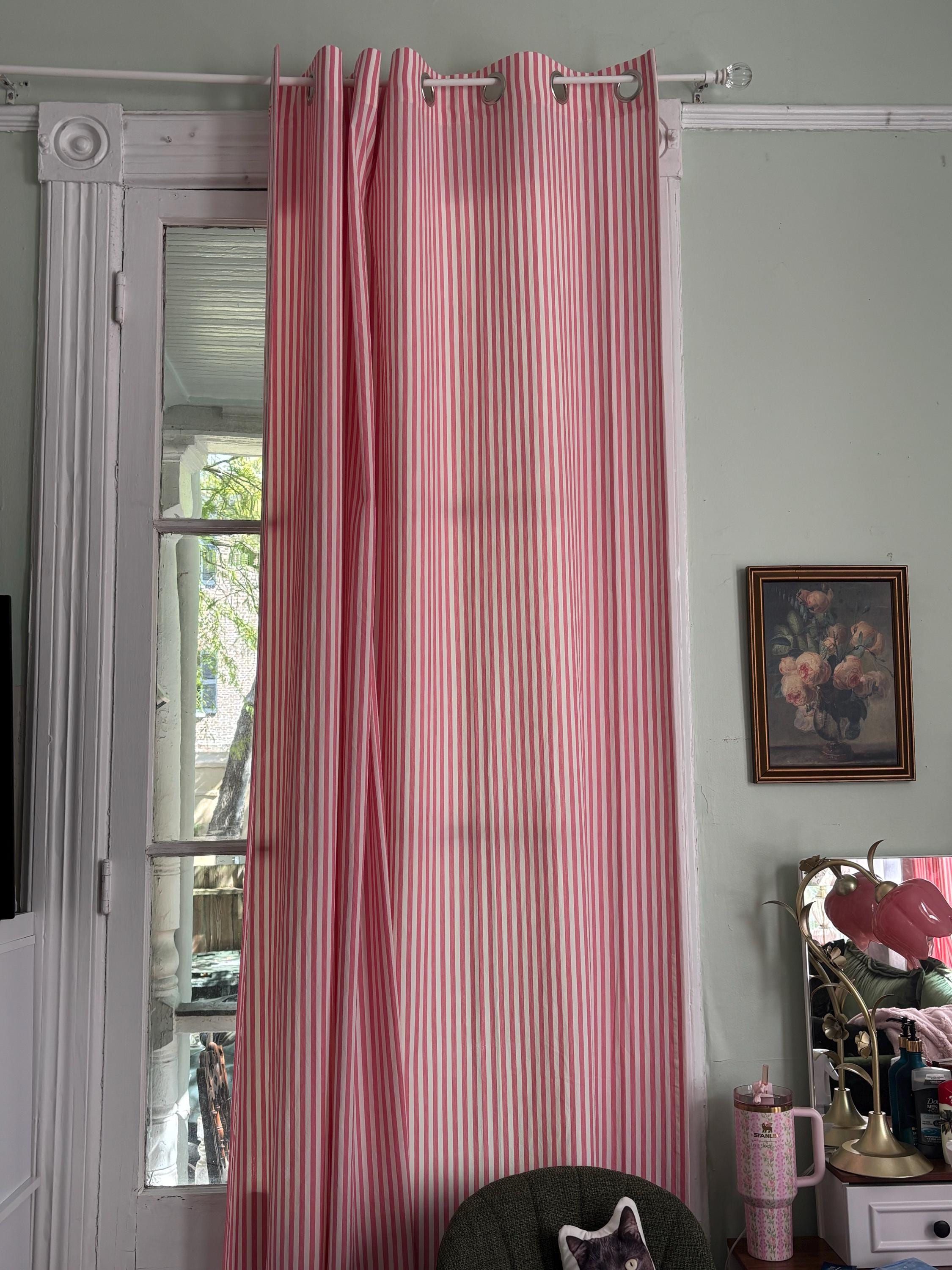 Make Your Place Preciously With Modern Vintage Faded Hot Pink Striped Curtain with Ivory Background Cotton Drapery Panel for Living Room and Bedroom.
